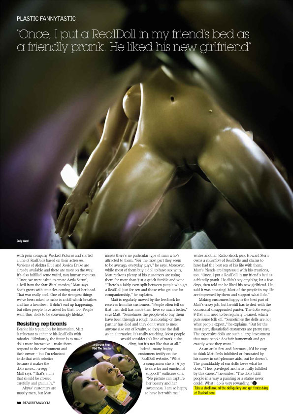 I spotted that Zack had done a great story on a sex doll manufacturer in LA. And we’re not talking about those cheapo ones you find down in Soho ( not that I have any knowledge about those shops or anything..;-)