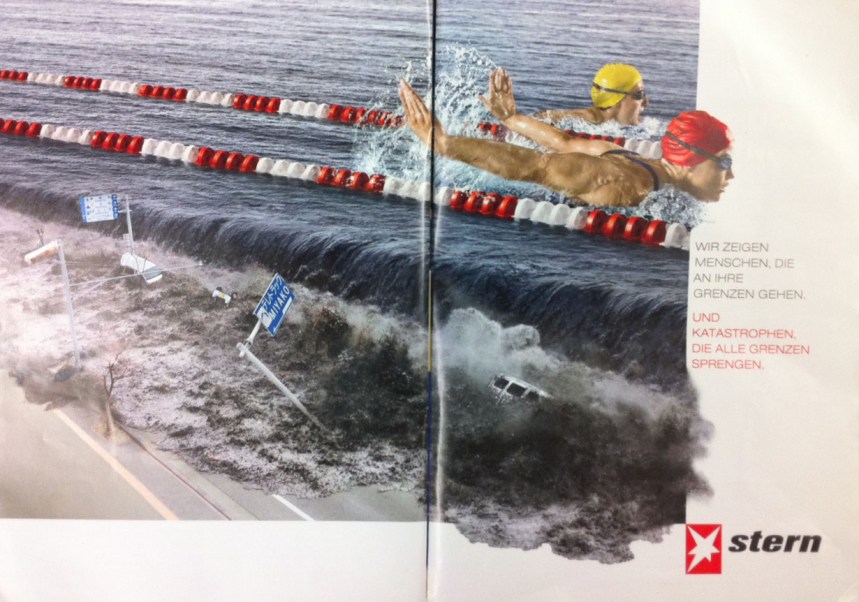 In the latest issue, they have an advertorial for Stern and I have to admit, after I got the translation sorted via a colleague of mine. I was slightly taken aback. Was it really a great idea to comp together a dynamic swimming picture with a news image from the Tsunami in Japan, from earlier this year?