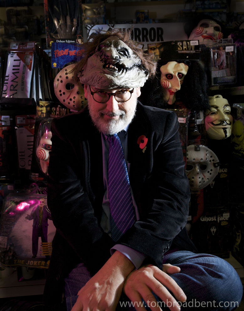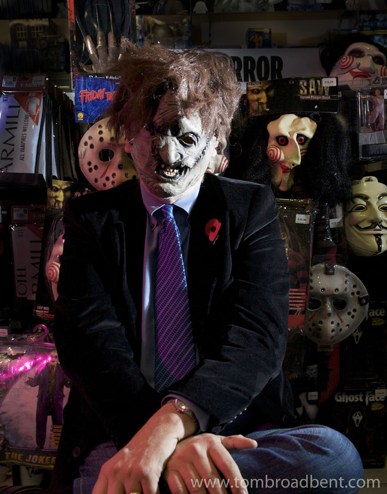 Having read his book, I had this idea of him wearing a horror mask of one of the monsters from his book. The only problem would be getting him to wear it…I had to engage the old fashioned method of asking him on the day and it worked, he went for Leatherface.
