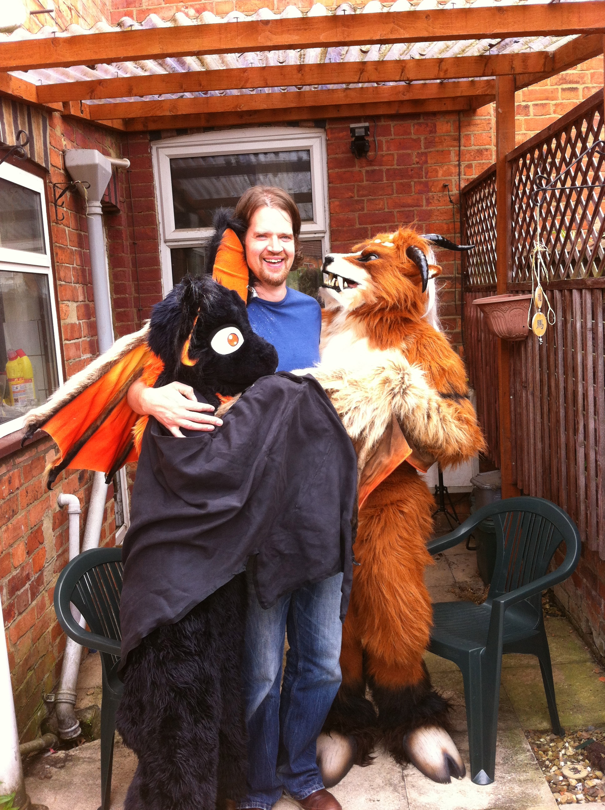 As if meeting a motorbike riding raptor wasn’t enough, a short costume change later and we have two very different personalities. Pazuzu and Fruitloop, a demon lord and a bat respectively. Pazuzu kicks off to a very innocent question from me about where he’s from, informing me in quite strident tones that he’s not merely a demon lord but that he originates from Sumeria and he’s here to see his adoring public.